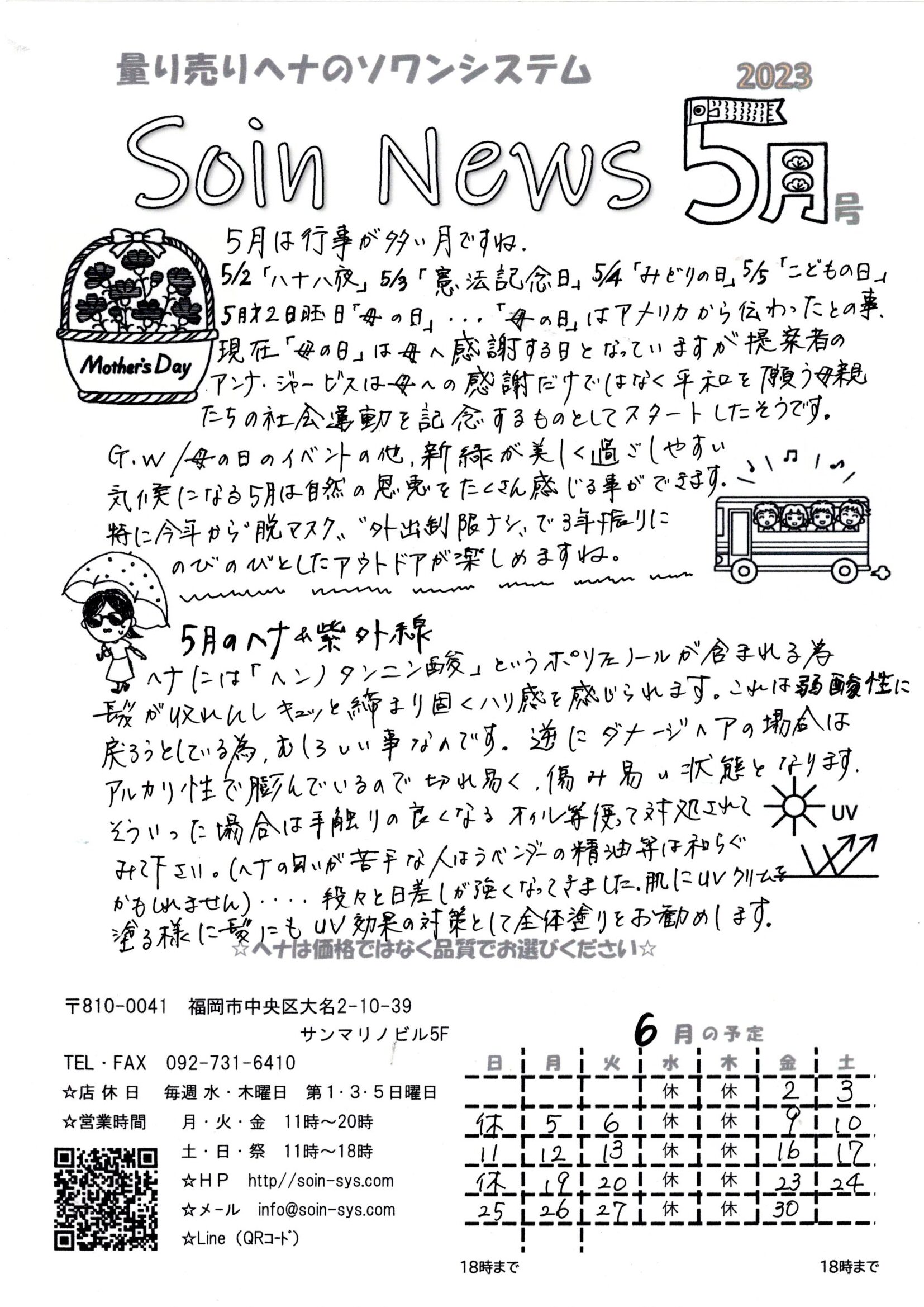 あっという間にソワンニュース4月号の配信の時期になりました。