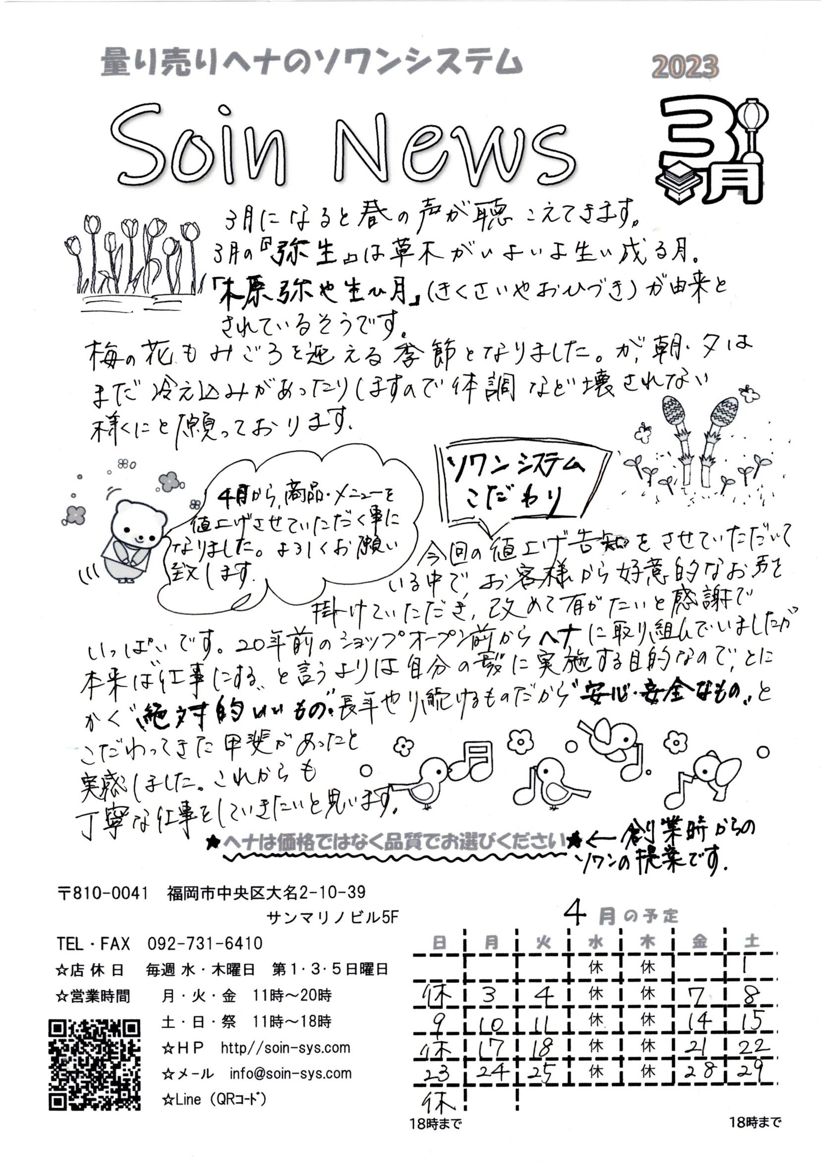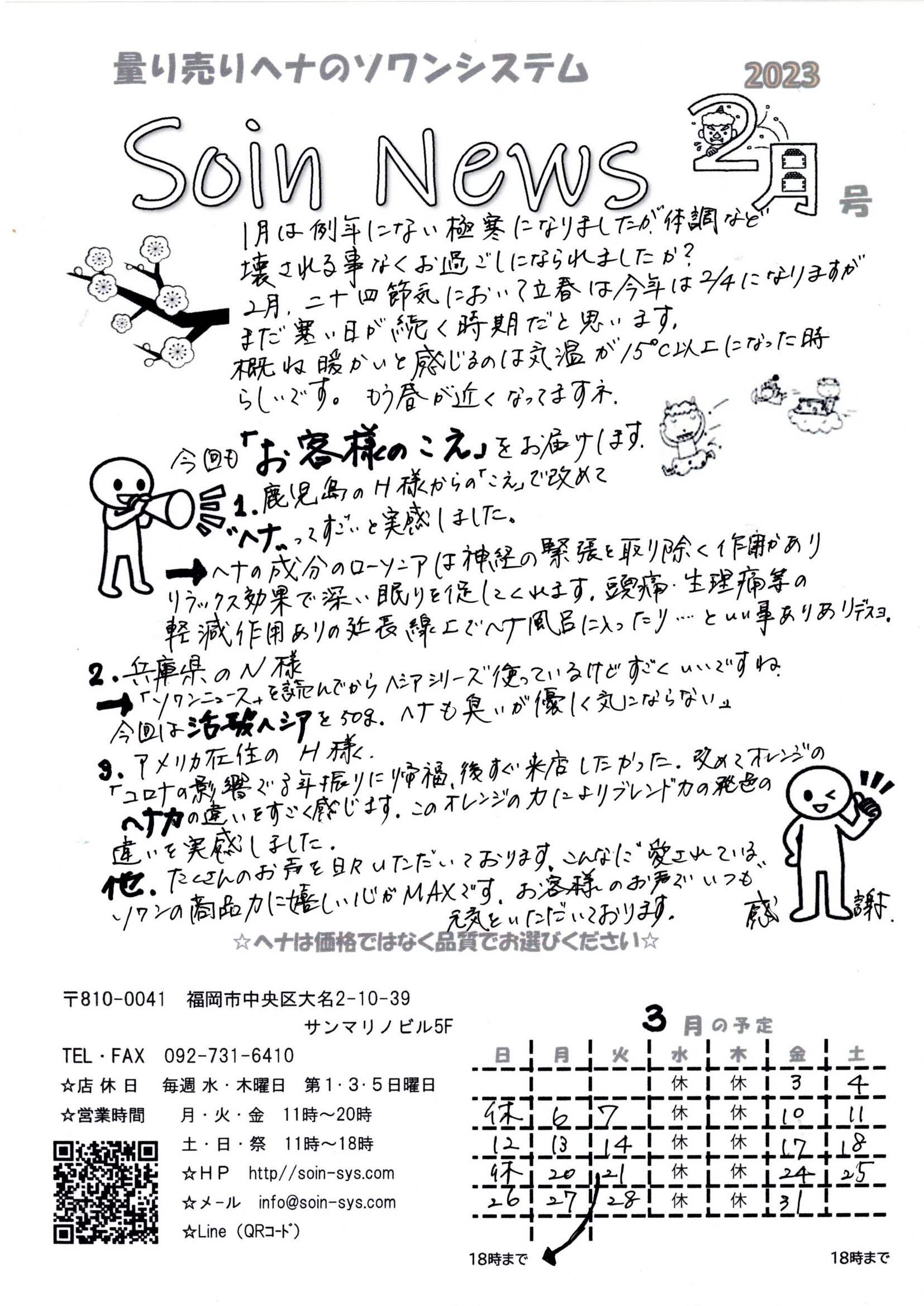 3月号のソワンニュース配信です。