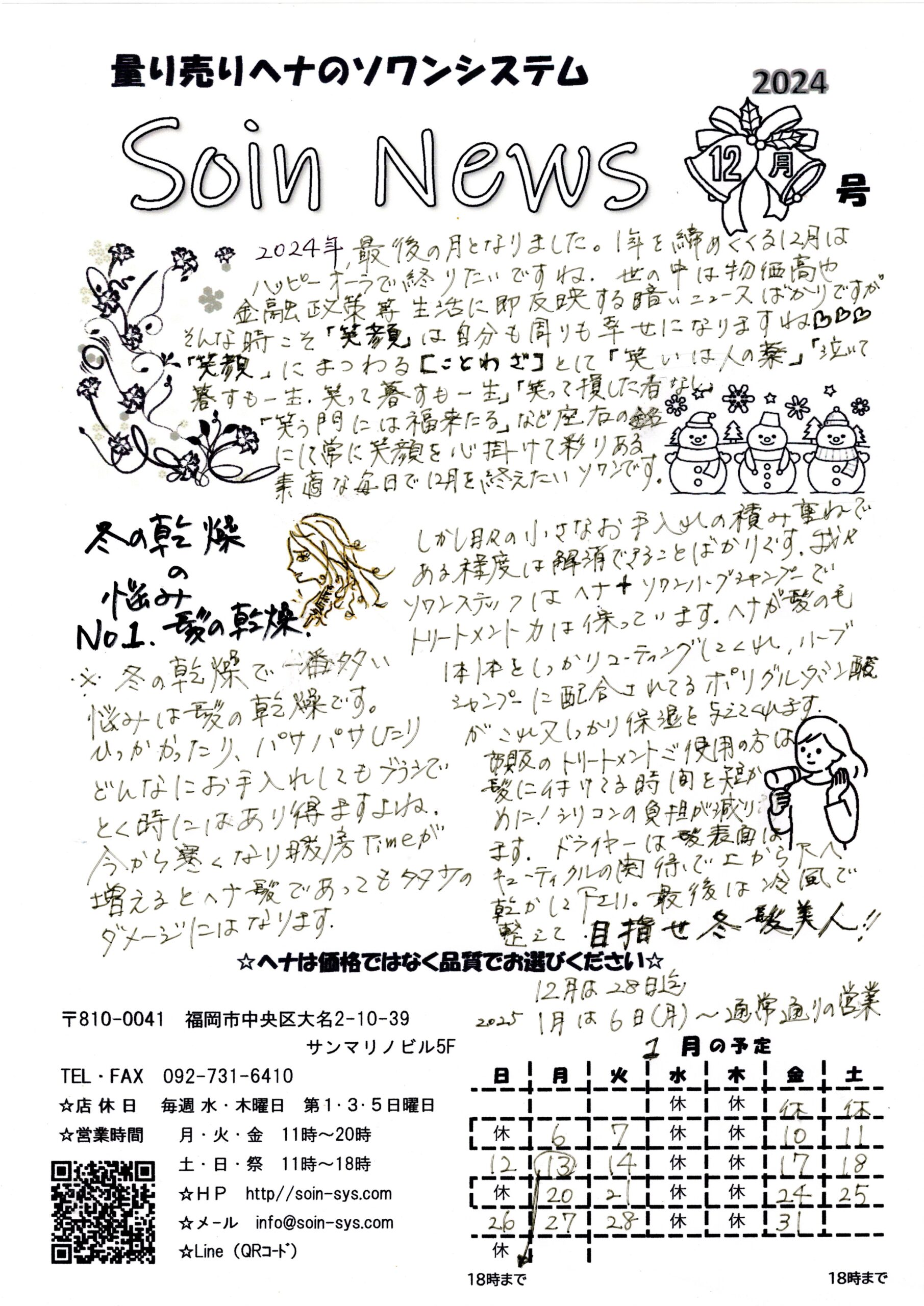 ソワンシステムへようこそ。店長の石橋です。毎月の白髪染めだから身体や髪・地肌に安全・安心であるのはもちろん、回数を重ねる度に髪が健康で美しくなっていくものを!とヘナの品質を追求しています。